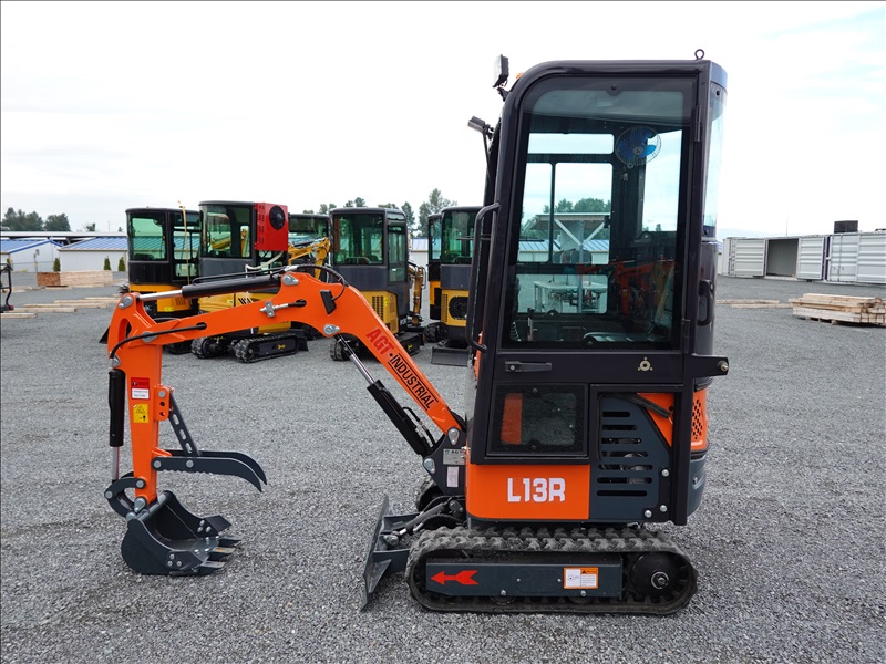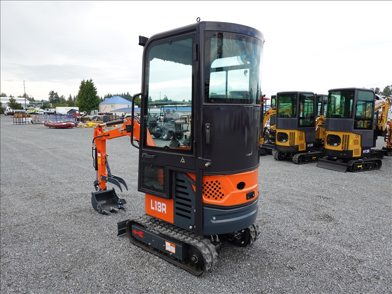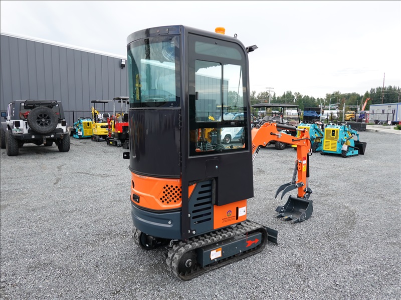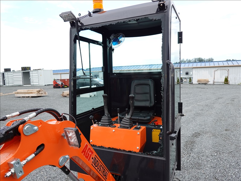 MINI EXCAVATOR, 13.5 HP RATO 1 CYL GAS, 13" BUCKET, THUMB, AUX HYD, BLADE, RUBBER TRACKS, FULL CAB (WINDSHIELD IS BROKEN)
