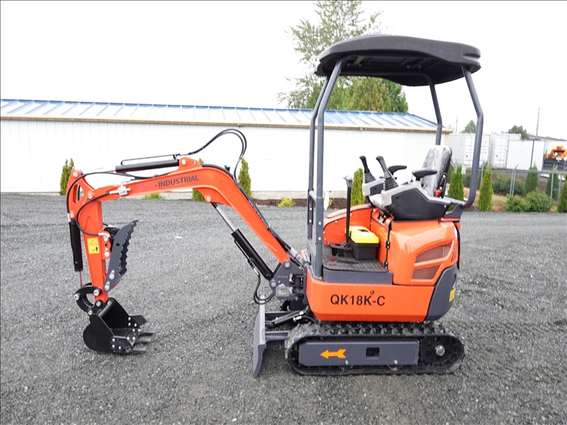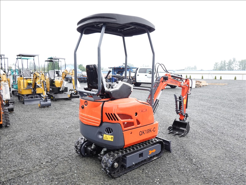 MINI EXCAVATOR, KUBOTA 3 CYL DIESEL, 13" BUCKET, HYD THUMB, BLADE, RUBBER TRACKS, CANOPY