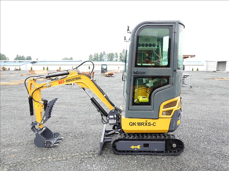 MINI EXCAVATOR, 13.5 HP RATO 1 CYL GAS, 13" BUCKET, HYD THUMB, BLADE, RUBBER TRACKS, A/C CAB