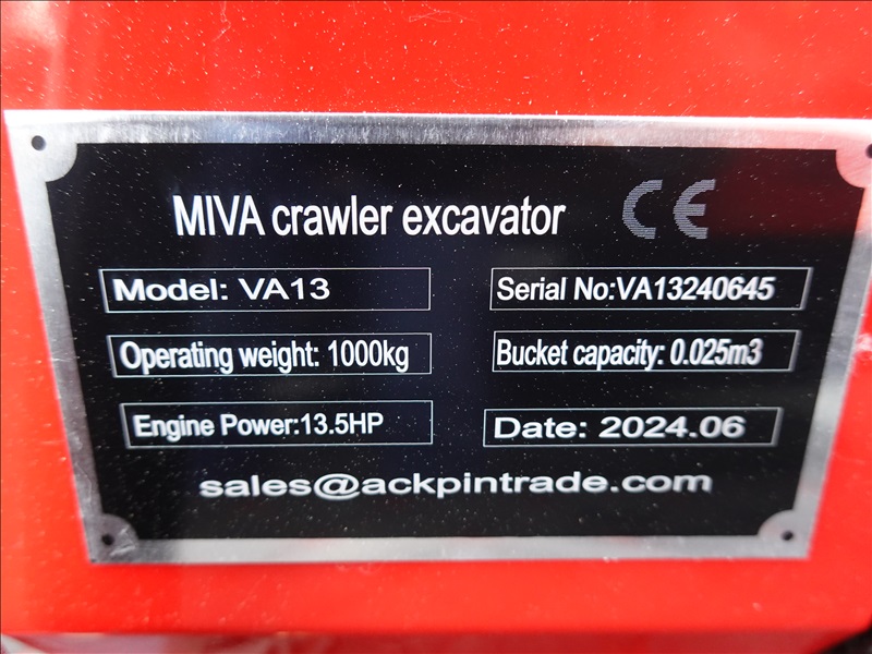 MINI EXCAVATOR, 13.5 HP RATO 1 CYL GAS, 13" BUCKET, THUMB, AUX HYD, BLADE, RUBBER TRACKS, CANOPY