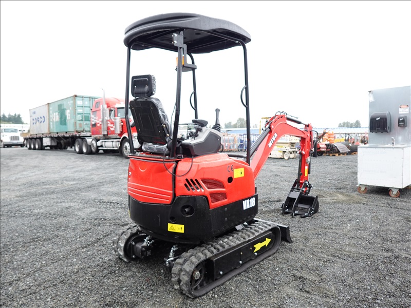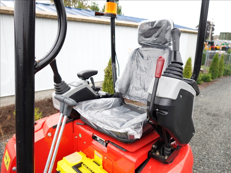 MINI EXCAVATOR, 13.6 HP KUBOTA D722, SWING BOOM, 17" BUCKET, THUMB, AUX HYD, BLADE, RUBBER TRACKS (SERIAL NUMBER TAG DAMAGED, SEE PHOTO)