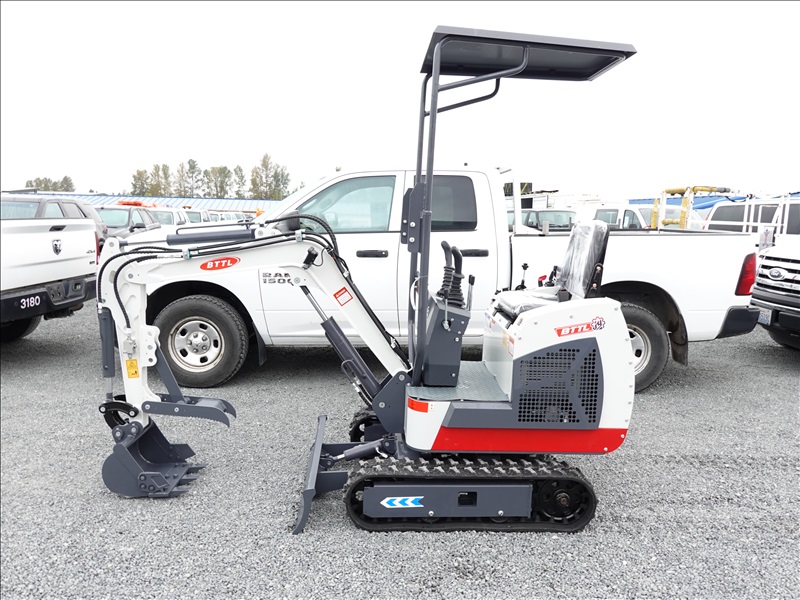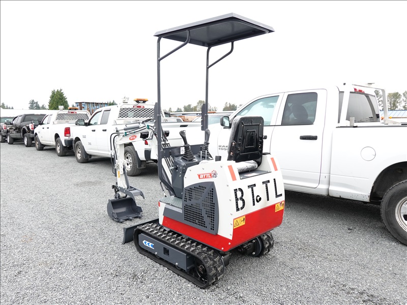 MINI EXCAVATOR, 13.5 HP BRIGGS & STRATTON 1 CYL GAS, 15" BUCKET, THUMB, AUX HYD, BLADE, RUBBER TRACKS, CANOPY