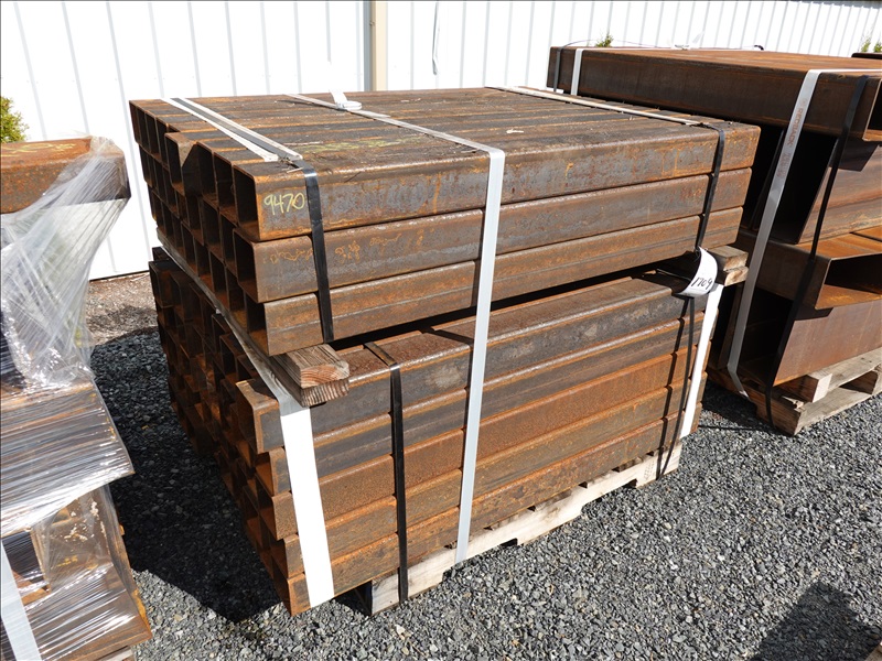 LOT, ASSORTED 4" X 4" STEEL SQUARE STOCK, LENGTHS TO 51" ON THIS PALLET