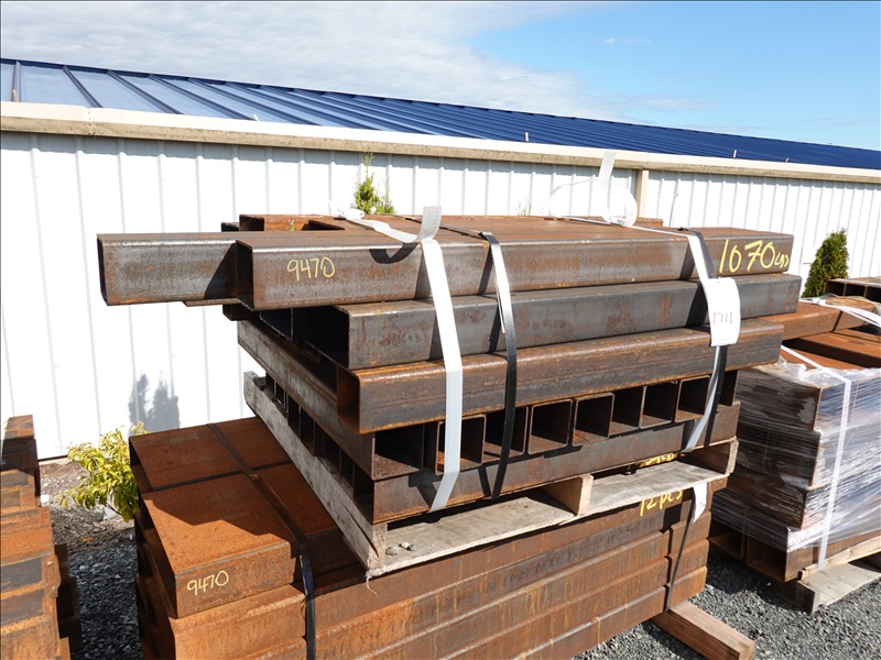 LOT, ASSORTED 4" X 4" & 4" X 8" STEEL SQUARE STOCK LENGTHS TO 64" ON THIS PALLET