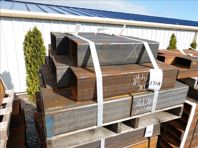 LOT, ASSORTED 6" X 8" & 6" X 12" STEEL SQUARE STOCK, LENGTHS TO 37" ON THIS PALLET