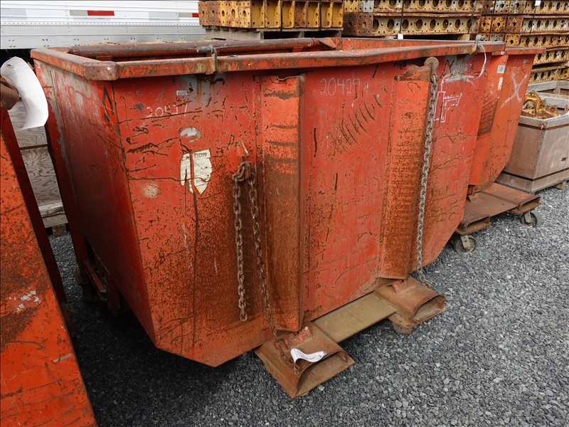 ORANGE BOX SELF-DUMPING HOPPER ON CASTERS W/FORK POCKETS, 74"L X 50"W X 53"H (NO REMOVAL BEFORE WEDNESDAY, OCTOBER 16TH)
