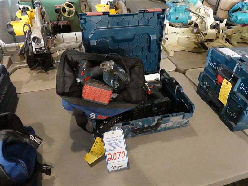 LOT, (2) BOSCH DDS182 1/2" CORDLESS DRILLS, 18V W/(4) BATTERIES, (2) CHARGERS, (1) HARD CASE & (1) SOFT CASE