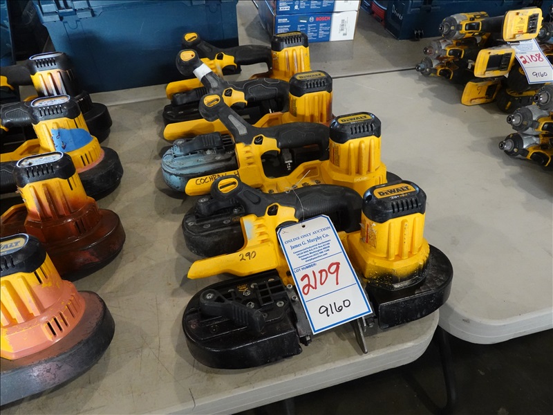 LOT, (4) DEWALT DCSS371 CORDLESS BANDSAWS, 20V MAX (NO BATTERIES OR CHARGERS)