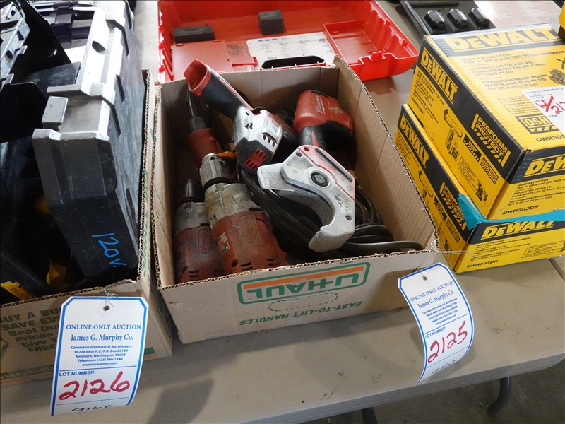 LOT, (3) MILWAUKEE CORDED DRILLS, 115V & (2) 12V CORDLESS CUTTERS