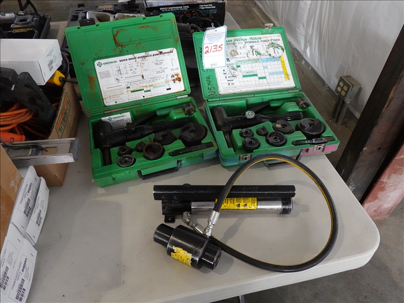 LOT, (2) GREENLEE 7906SB QUICK DRAW 90 HYDRAULIC PUNCH DRIVER WITH 1/2" - 2" CONDUIT SIZES & (1) EXTRA HYDRAULIC HAND PUMP
