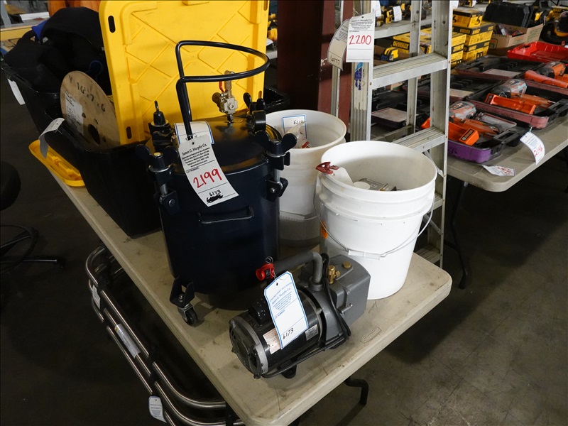 LOT, ELIMINATOR DV-6E ECONOMY VACUUM PUMP W/EPOXY MIXING TANK & CASTING RESIN