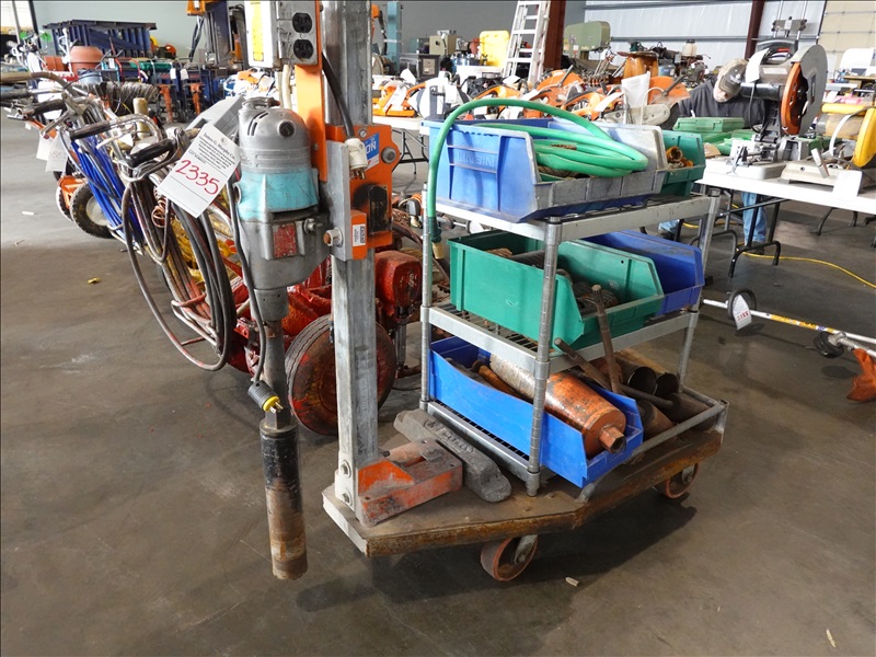 LOT, MILWAUKEE CORE DRILL MOUNTED ON METAL CART W/VARIOUS SIZES OF CORE BITS