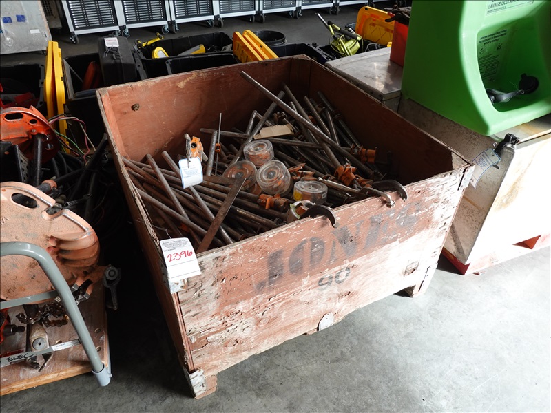 LOT, ASSORTED WOOD BAR CLAMPS & CUTTER HEADS IN THIS BIN (MUST TAKE BIN)