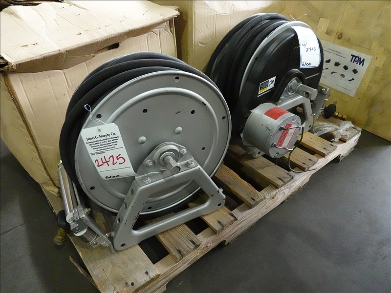 LOT, (2) HANNAY P56AN227 12V ELECTRIC HOSE REELS W/HOSES