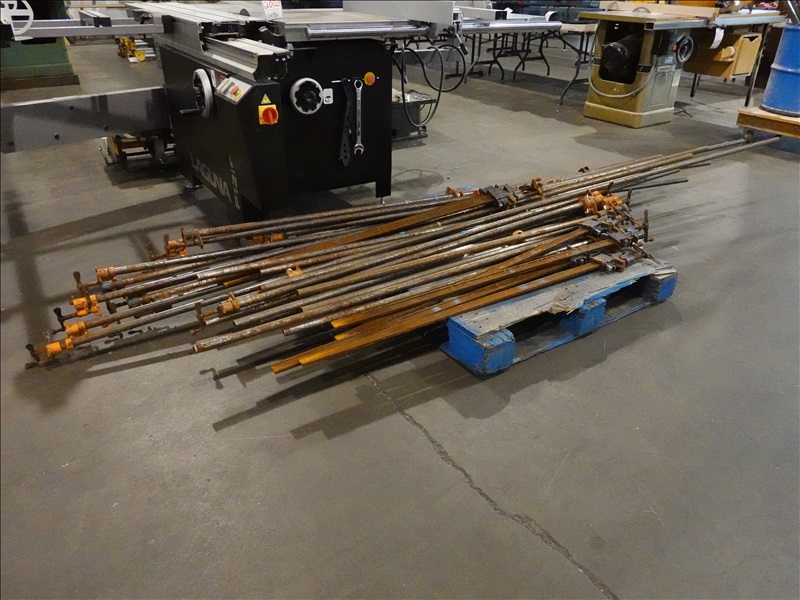 LOT, ASSORTED WOOD BAR CLAMPS, VARIOUS SIZES ON THIS PALLET