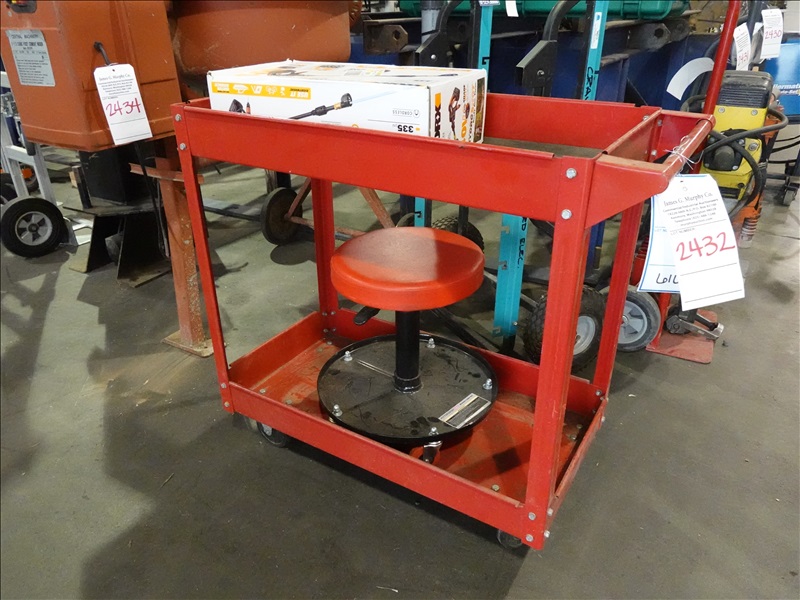 LOT, METAL WORK CART, PITTSBURG MECHANICS ROLLER SEAT & WORX 40V HYDRO-SHOT 335 PSI (UNUSED)