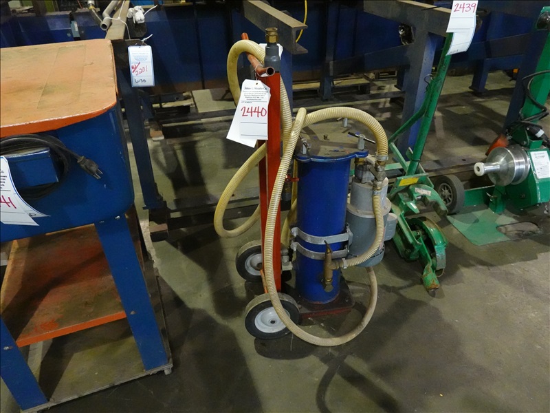 CUSTOM MADE TRANSFER PUMP W/FILTER ON HAND TRUCK, 115V, 1/2 HP