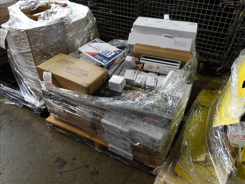 LOT, ASSORTED EXIT LIGHTS & PHOTO ELECTRIC CONTROLS ON THIS PALLET