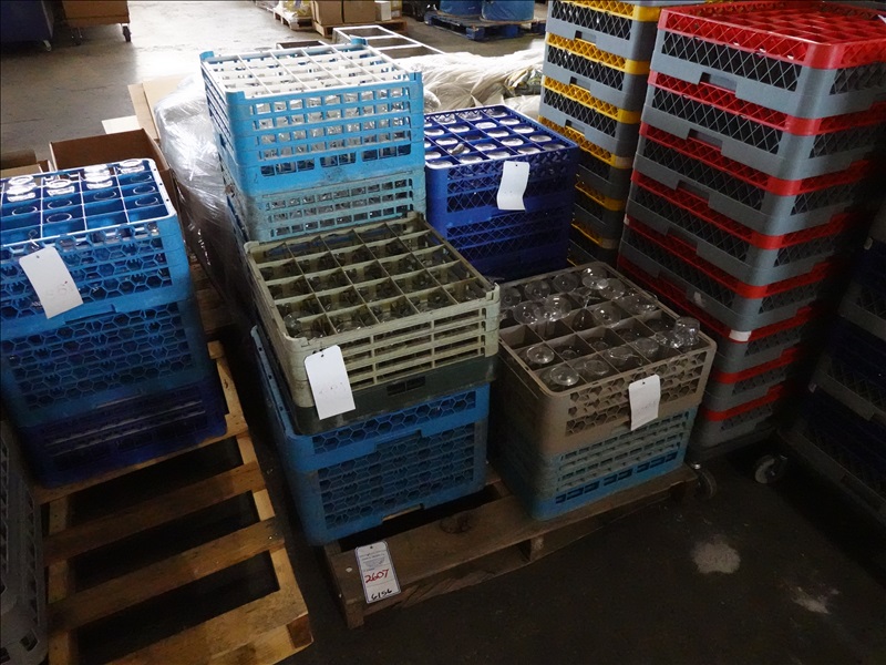 LOT, ASSORTED STEMMED GLASSWARE W/GLASS RACKS ON THIS PALLET