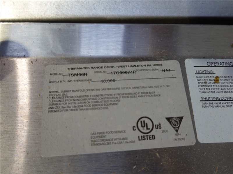 36" S/S 40,000 BTU NATURAL GAS SALAMANDER, (MISSING KNOBS)