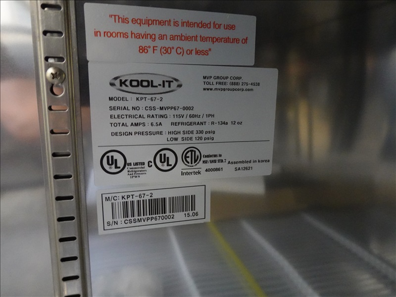 67" S/S 2-DOOR REFER PREP TABLE W/PLASTIC INSERTS 115V, SINGLE PHASE, (UNUSED)