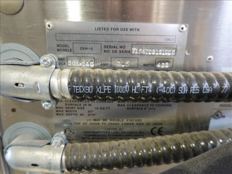 16" S/S CONVEYOR TOASTER OVEN, 120/240V, S/N: LE0098290, GILES OVH-10 FILTERATION SYSTEM, 208/240V, S/N: 7154709161005, & RANGE GUARD, RG-1.25G WET CHEMICAL SOLUTION EXTINGUISHING SYSTEM UNIT
