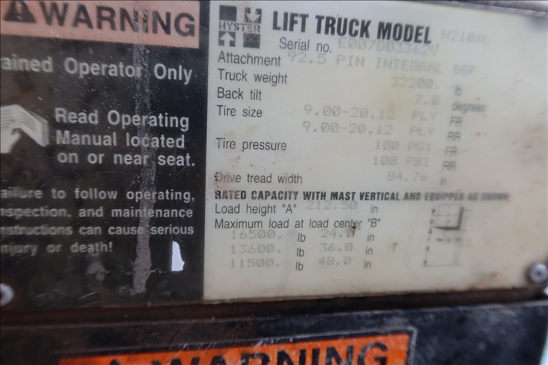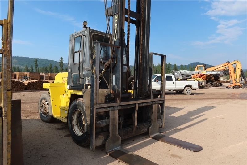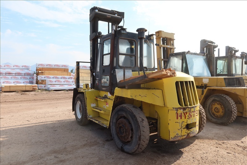 16,500 LB DUAL PNEUMATIC FORKLIFT, 212" 2-STAGE MAST, SIDE SHIFT, LUMBER FORKS, 6 CYL DIESEL, ENCLOSED CAB (UNIT #107)