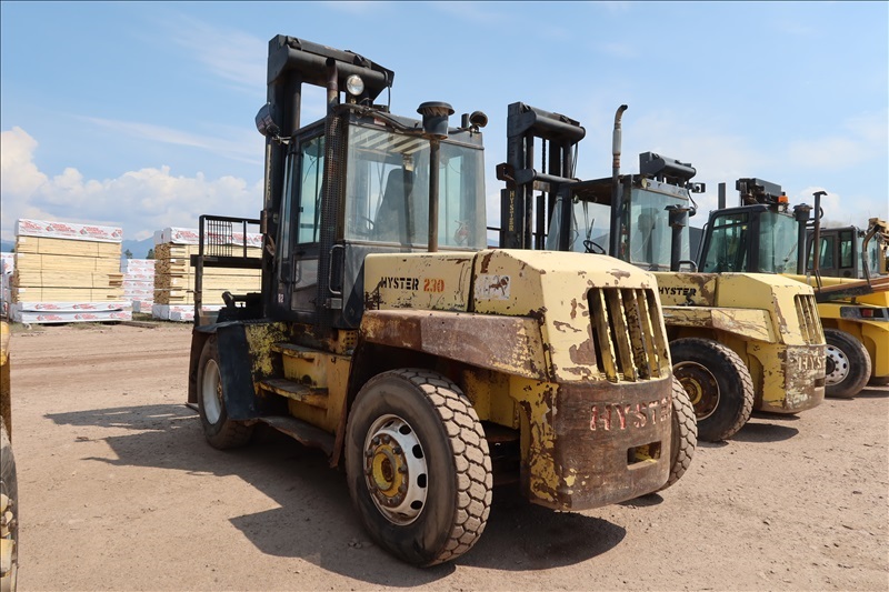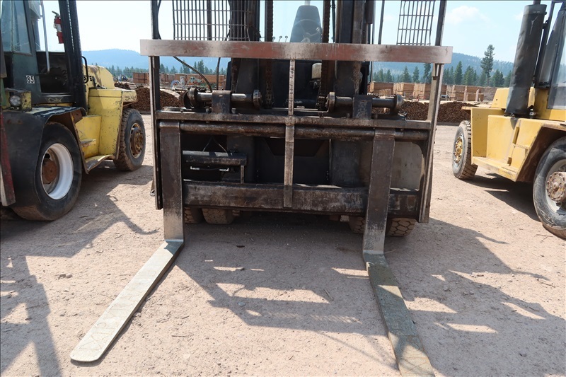DUAL PNEUMATIC FORKLIFT, 214" MAST, SIDE SHIFT, 6 CYL PERKINS, MONOTROL (UNIT #82)