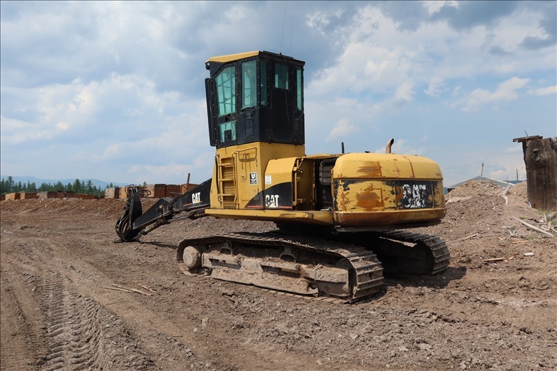 HEEL BOOM LOG LOADER, CAT DIESEL, 27-1/2" DOUBLE GROUSER TRACKS, ENCLOSED CAB (UNIT #142)