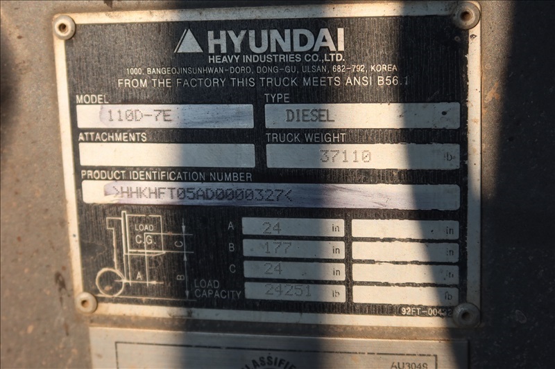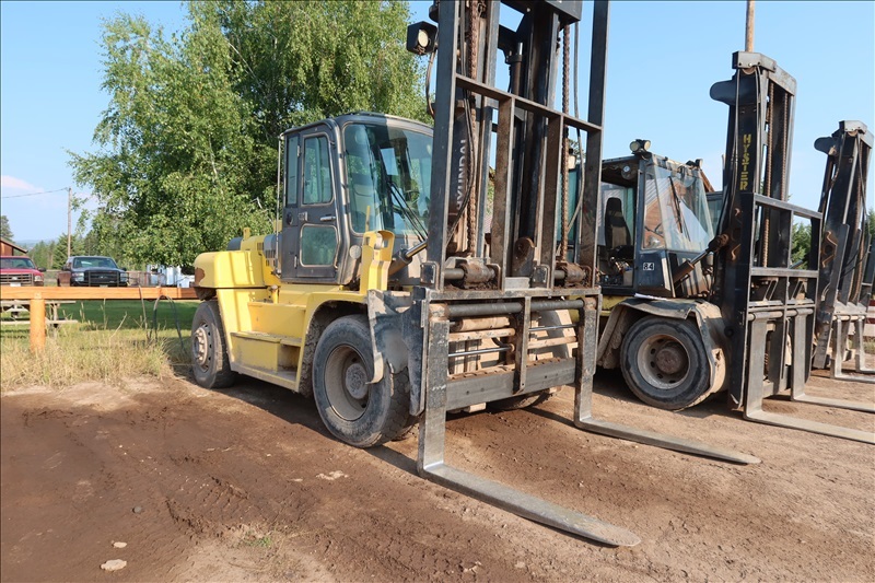 24,500 LB DUAL PNEUMATIC FORKLIFT, 177" 2-STAGE MAST, SIDE SHIFT, DUAL FORK POSITIONERS, DIESEL, ENCLOSED CAB