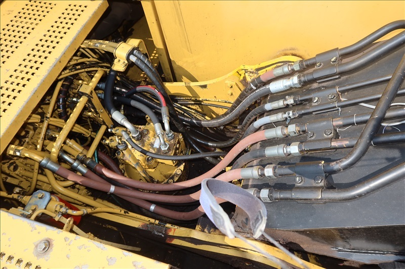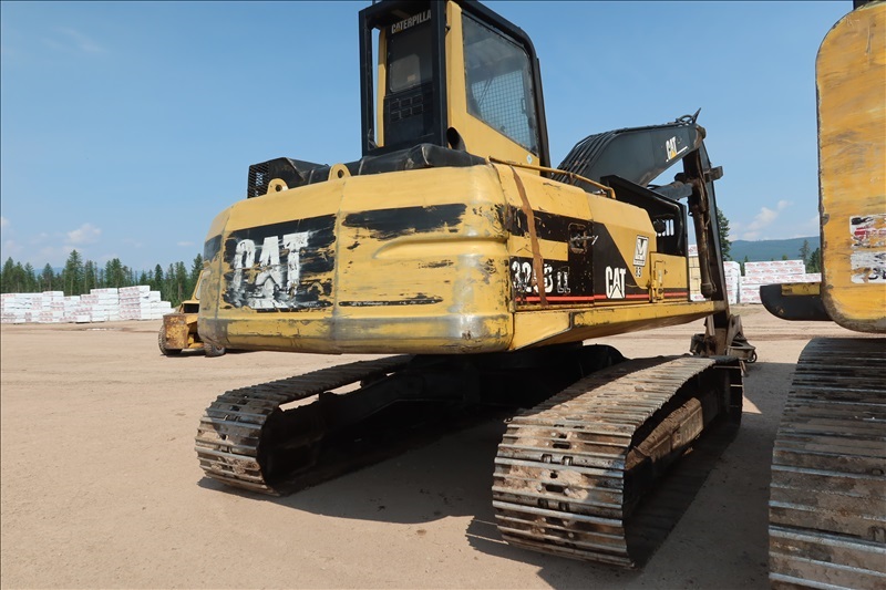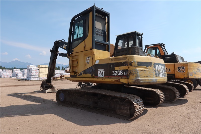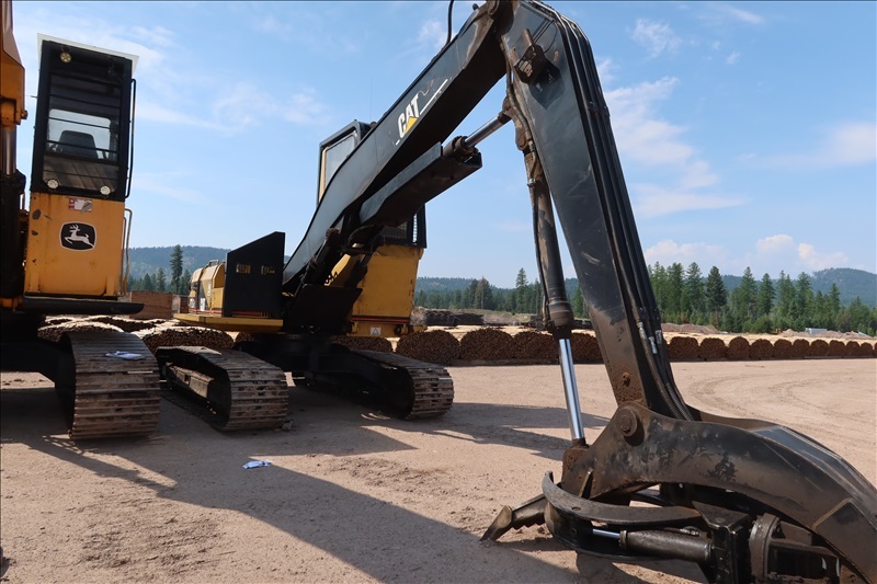 HEEL BOOM LOG LOADER, HYDRAULIC SWIVEL GRAPPLE, CAT DIESEL, 27-1/2" TRIPLE GROUSER, CAB & CYLINDER GUARD (UNIT #83)