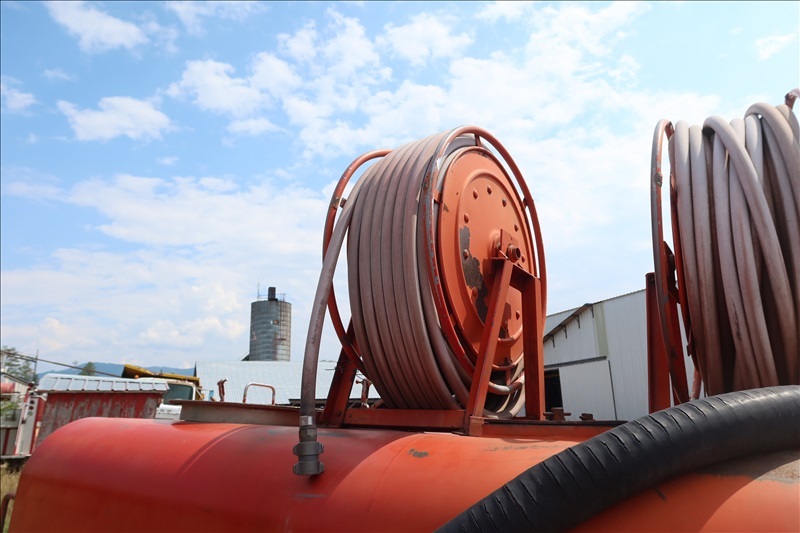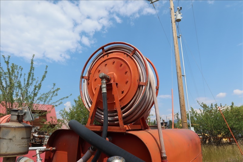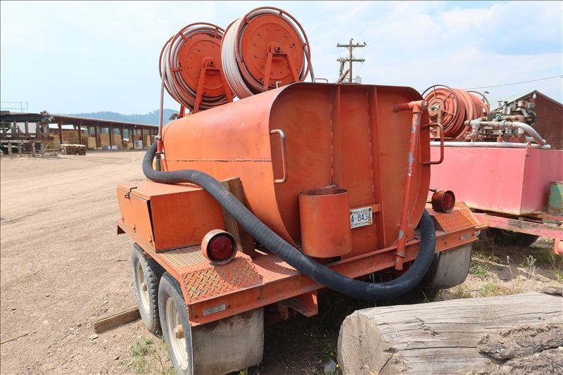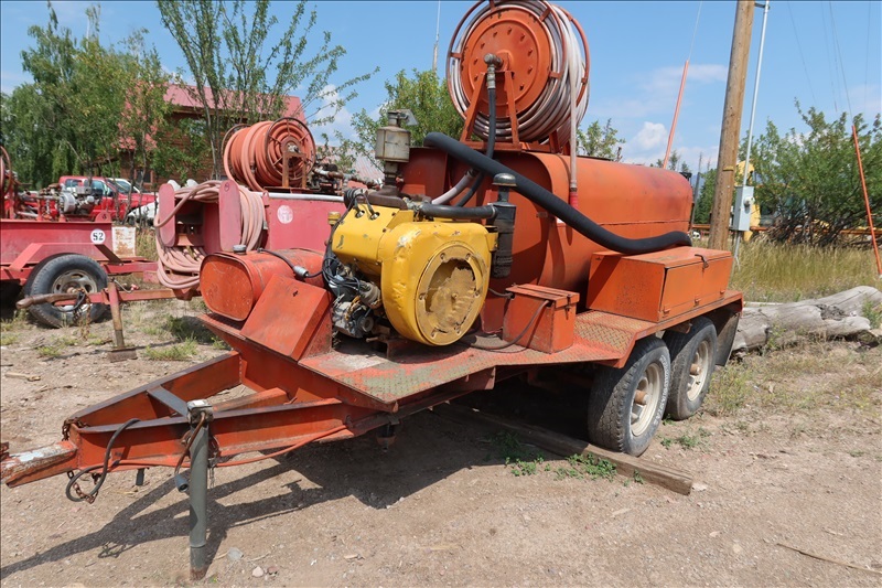 T/A WATER PUMP TRAILER, 4 CYL GAS DRIVE PUMP, (2) HOSE REELS W/NOZZLES