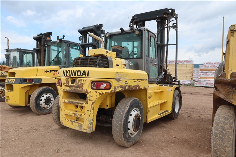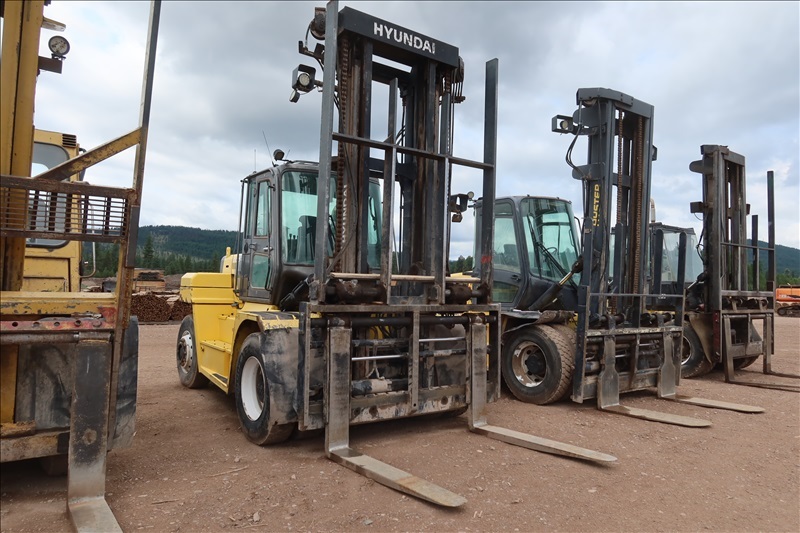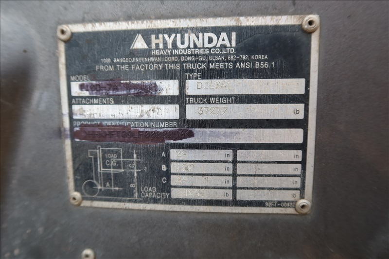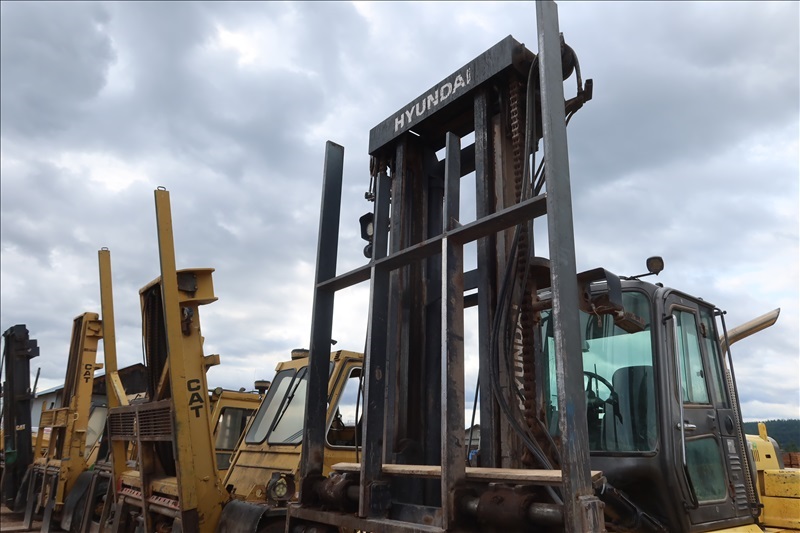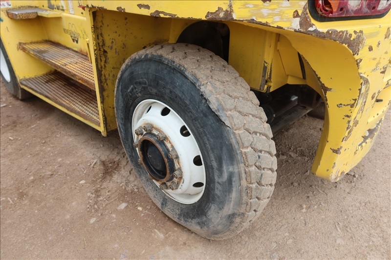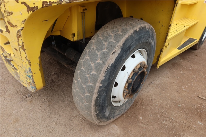 24,251 LB DUAL PNEUMATIC FORKLIFT, 197" 2-STAGE MAST, SIDE SHIFT, DUAL FORK POSITIONERS, CUMMINS DIESEL, 3 SPD, FWD/REV, ENCLOSED CAB (NEEDS RADIATOR TOP TANK REPAIRED, UNIT # N/A)