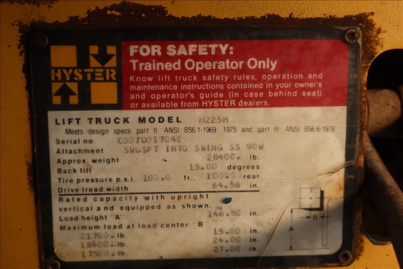 21,700 LB DUAL PNEUMATIC FORKLIFT, 217" 2-STAGE MAST, SIDE SHIFT, DETROIT DIESEL, MONOTROL, ENCLOSED CAB (UNIT #2)