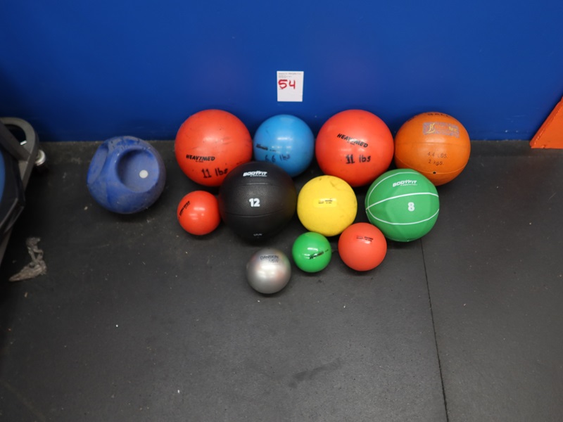 (12) MEDICINE BALLS RANGING FROM 1 LB - 12 LB