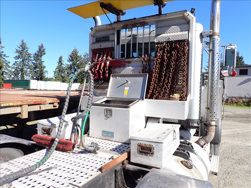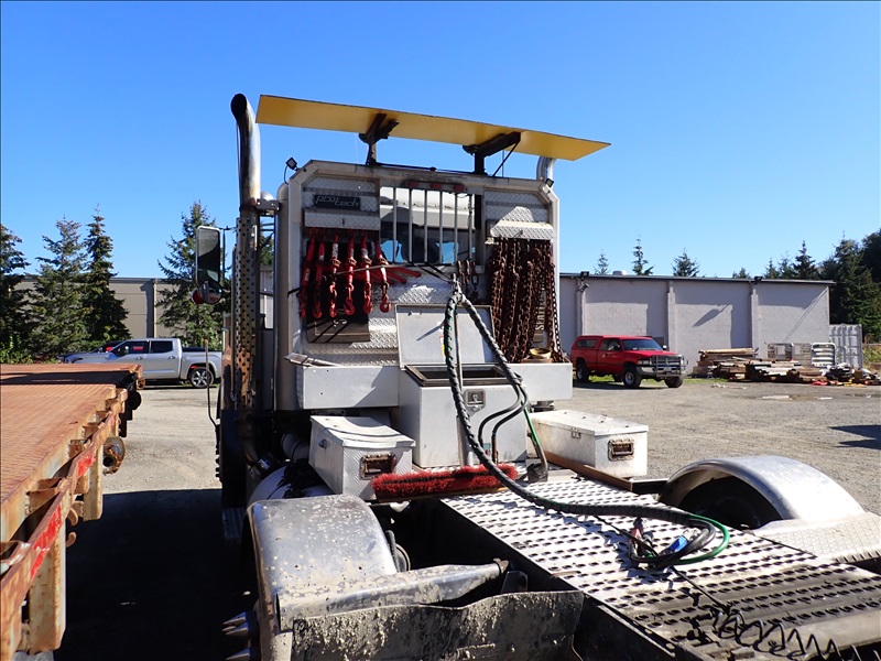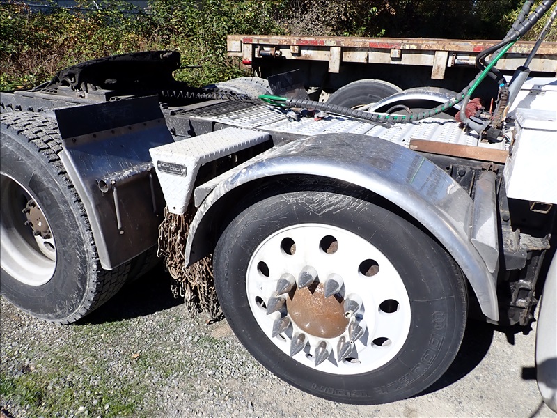 TRI-AXLE TRUCK TRACTOR, CAT 3406E DIESEL, EATON FULLER 18-SPD, DROP AXLE, HEADACHE RACK