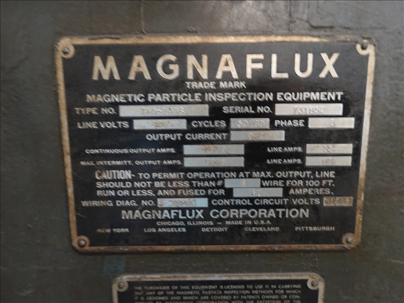 MAGNETIC PARTICLE INSPECTION MACHINE, 2,400A OUTPUT, 6,000A INTERMITTENT OUTPUT, 460V, 50/60 HZ, 3 PHASE