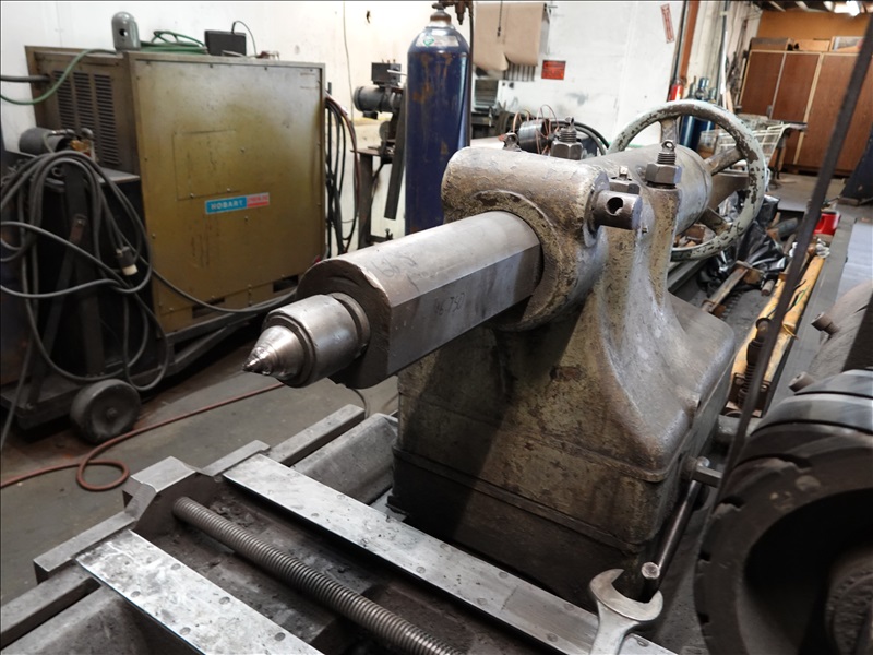 30" X 17.5' BELT POLISHING LATHE, TAIL STOCK, 3' WHEEL