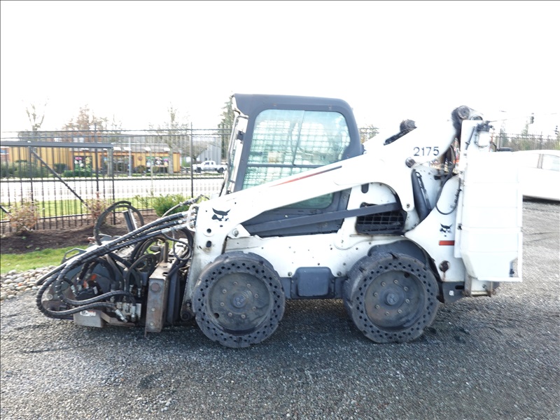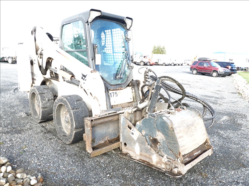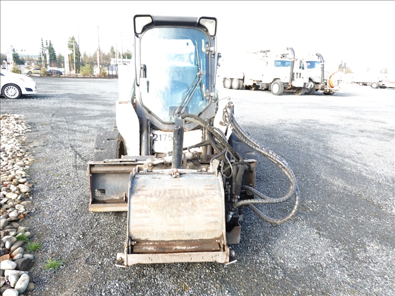 SKID STEER, 85 HP 3.4L, 2 SPD TRAVEL, RIDE CONTROL, HIGH FLOW AUX HYD, HYD COUPLER, WATER SYSTEM, A/C CAB, SOLID AIR TIRES