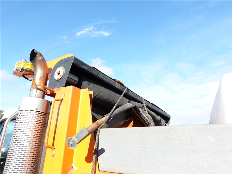 T/A, DUMP TRUCK, 12' STEEL BOX, TARP SYSTEM, CAT C7, AUTO, 193" W/B, 16,000 LB FRONT, 23,000 LB REARS, DROP AXLE, A/B, DEICER W/REAR SPRAYER BAR, TAILGATE INCLUDED