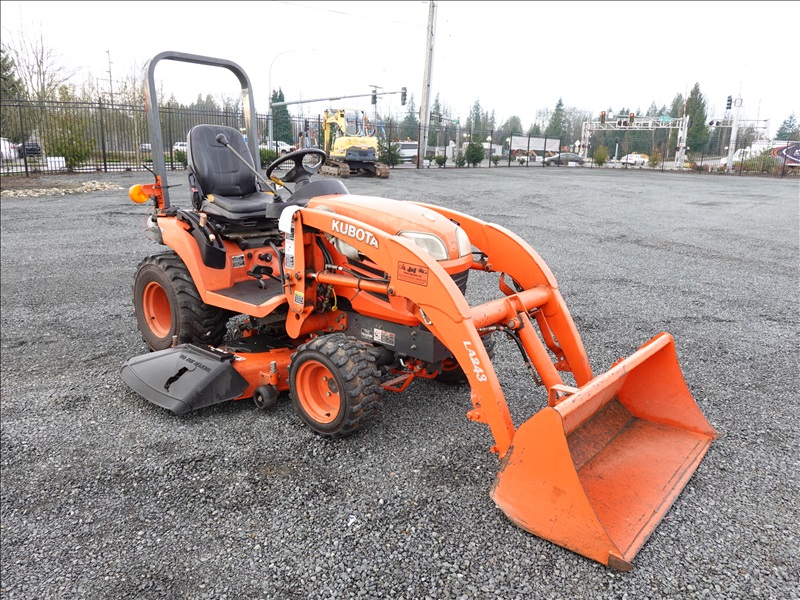 MFWD TRACTOR, 23 HP D902, 2-RANGE HYDROSTATIC, LA243 LOADER BUCKET, 54" MID MOUNT ROTARY MOWER, PTO, 3 POINT HITCH (HOUR METER IS INOPERABLE, NO READOUT)