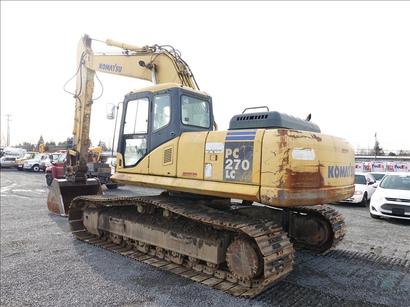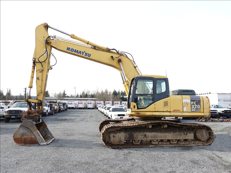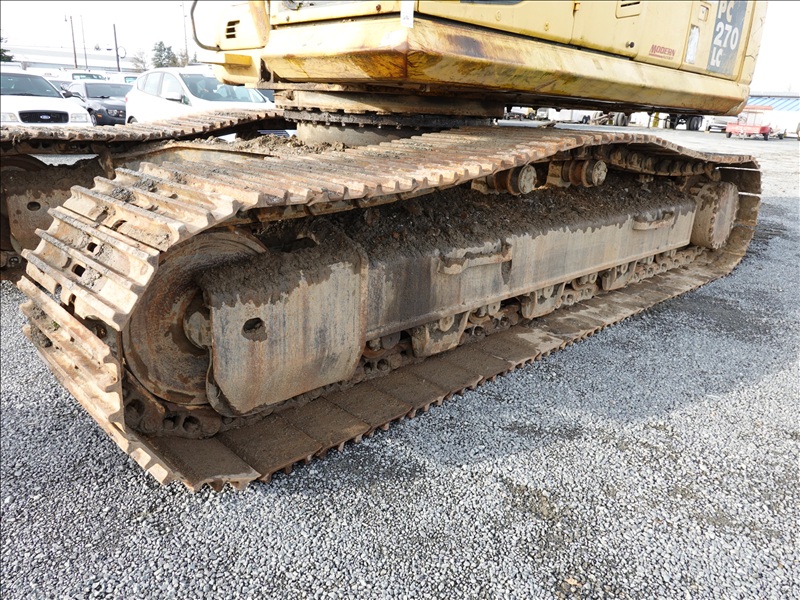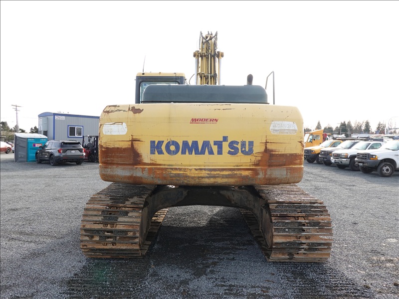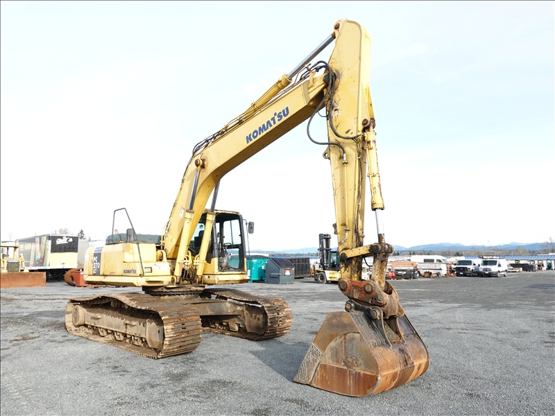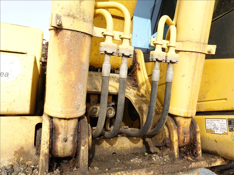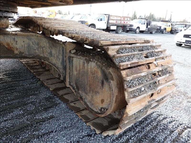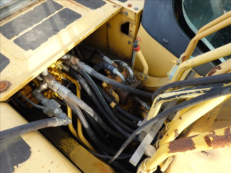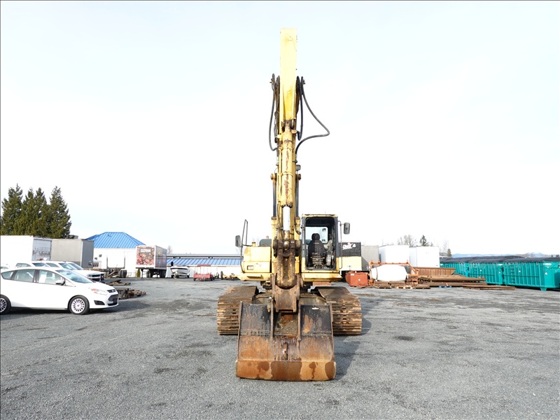 HYDRAULIC EXCAVATOR, 179 HP SAA6D102E-2, 10' STICK, 60" BUCKET, HYD PIN GRABBER, AUX HYD, A/C CAB (NO FRONT GLASS/FRAME, UNABLE TO READ HOUR METER, PLEASE SEE PHOTO)