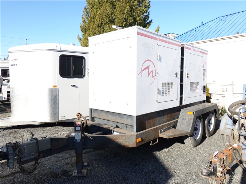 T/A, 171 KVA TRAILER MOUNTED GENERATOR, JOHN DEERE 6068HF285K 6 CYL DIESEL, 120/208/240/480V, SINGLE OR 3 PHASE, SURGE BRAKES, HOUR METER READS: 13,102