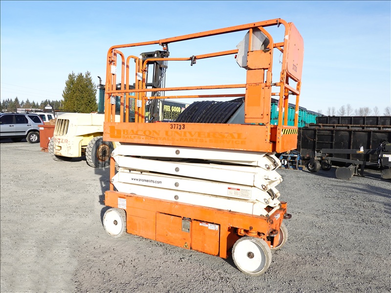 SCISSOR LIFT, 26' PLATFORM HEIGHT, 500 LB CAPACITY, A/C RECEPTACLE AT PLATFORM, 24V ELECTRIC (ELECTRICAL ISSUE, NO POWER, NO READ OUT ON HOUR METER)