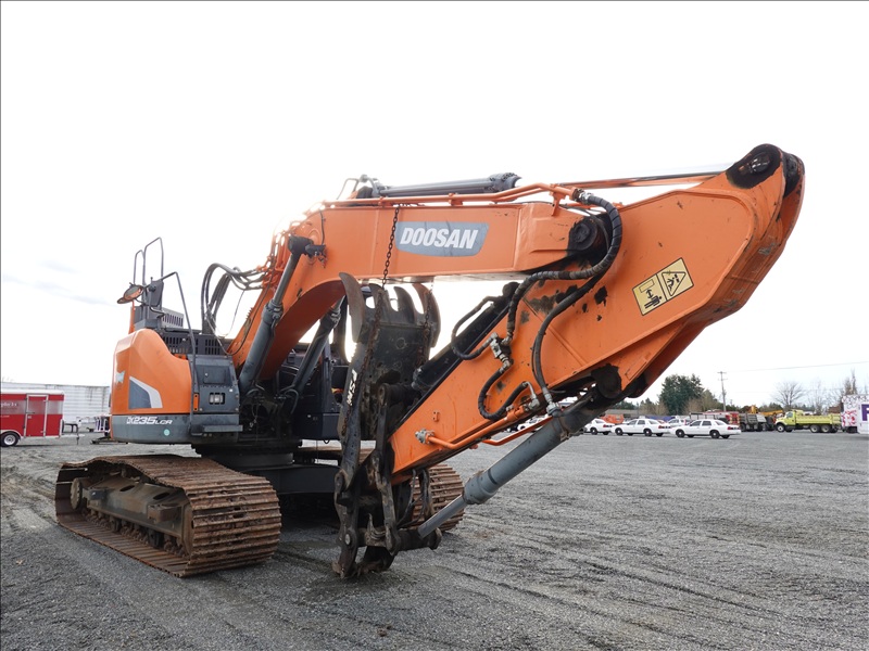HYDRAULIC EXCAVATOR, 174 HP DL06-LEE05, 9'7" STICK, CASCADE HYD WEDGE LOCK, PSM THUMB, AUX HYD NO BUCKET, INCLUDES ADDITIONAL CAB (**FIRE DAMAGE, THIS ITEM EXCEEDS OUR FORKLIFT CAPCITY, CUSTOMER IS RESPONSIBLE TO HIRE RIGGER FOR REMOVAL**, HOUR METER READ