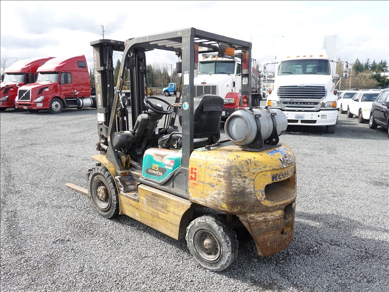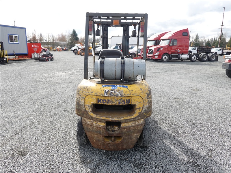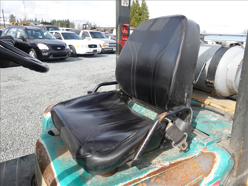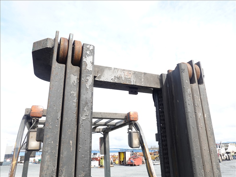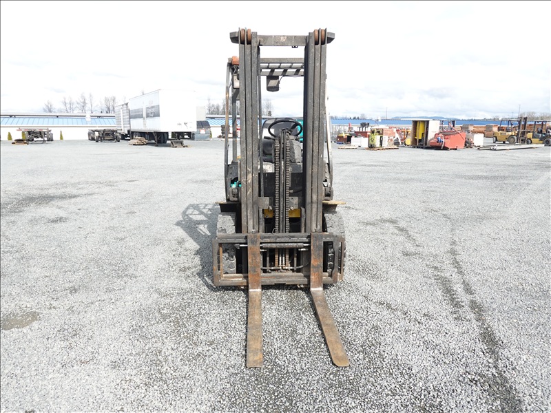 3750 LB SOLID TIRE FORKLIFT, 186" FORK HEIGHT, 3 STAGE MAST, SIDE SHIFT, 4 CYL LPG (NO PROPANE TANK)
