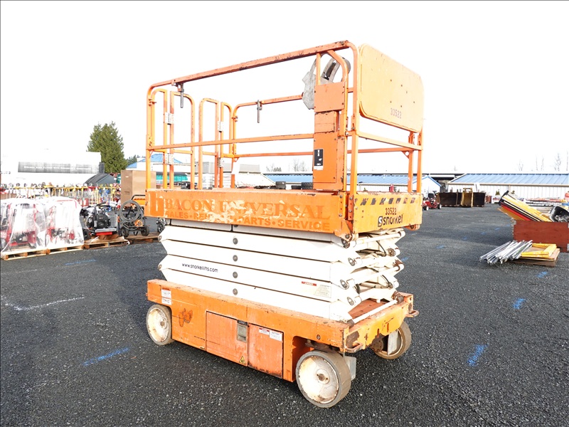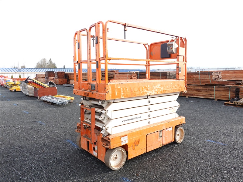 SCISSOR LIFT, 32' PLATFORM HEIGHT, 700 LB CAPACITY, A/C RECEPTACLE AT PLATFORM, 24V ELECTRIC, HOUR METER READS: 421
