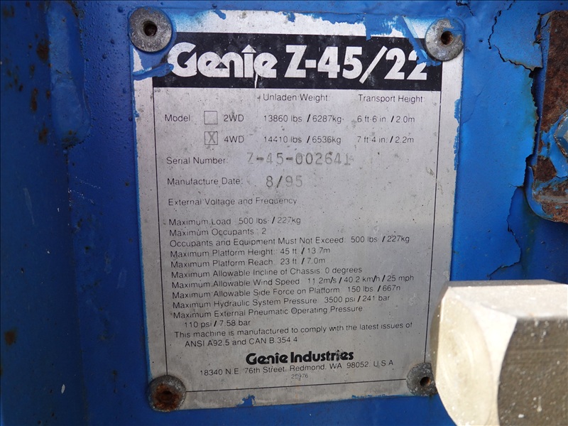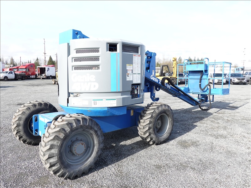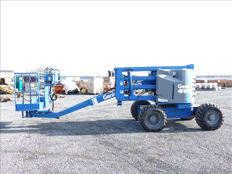 4WD ARTICULATED, BOOM LIFT, 45' PLATFORM HEIGHT, 23' HORIZONTAL REACH, 500 LB CAPACITY, HOUR METER READS: 3,271 (AERIAL FUNCTIONS ONLY WORK AT GROUND CONTROLS, BASKET CONTROLS NEED REPAIR)