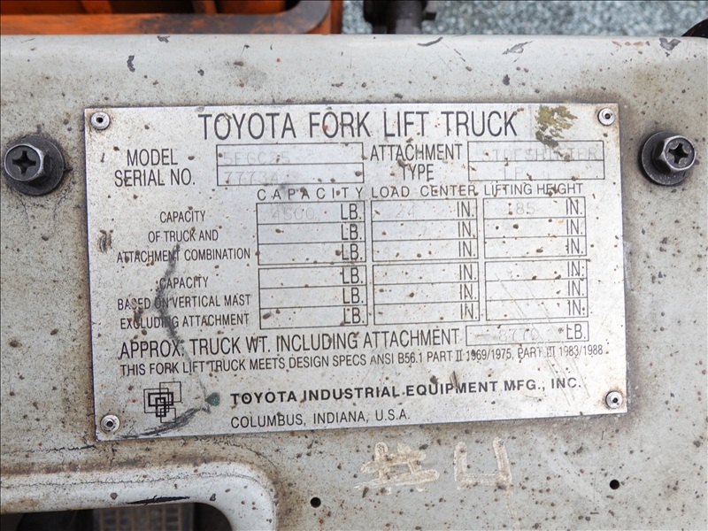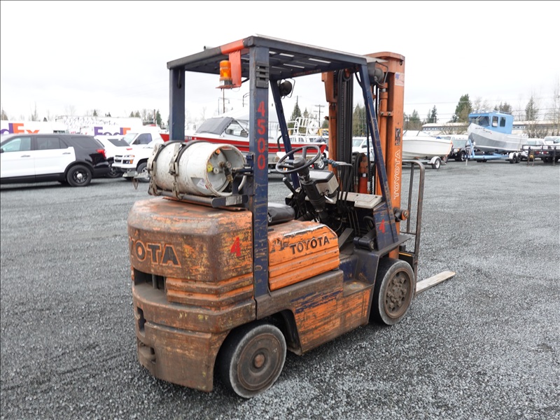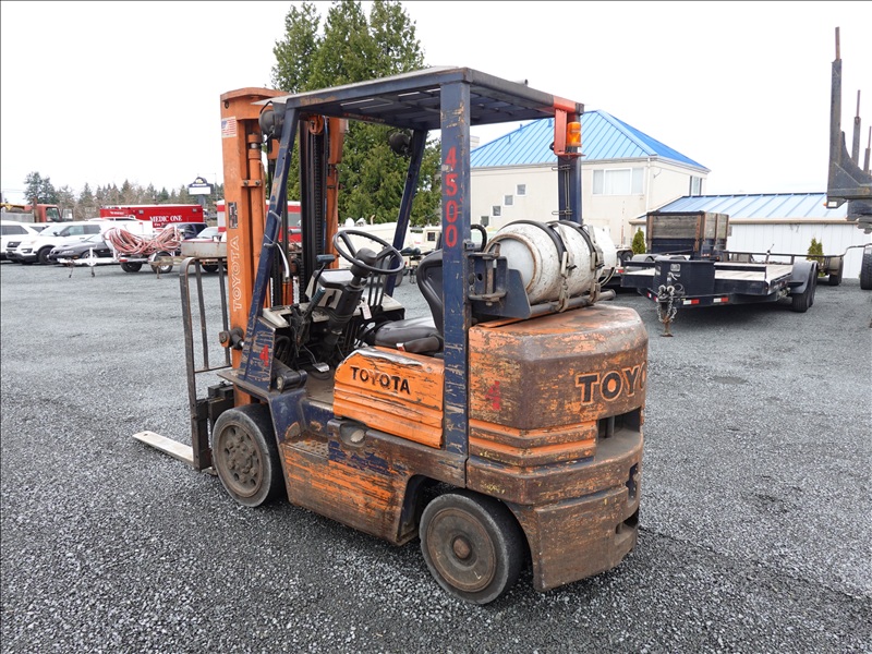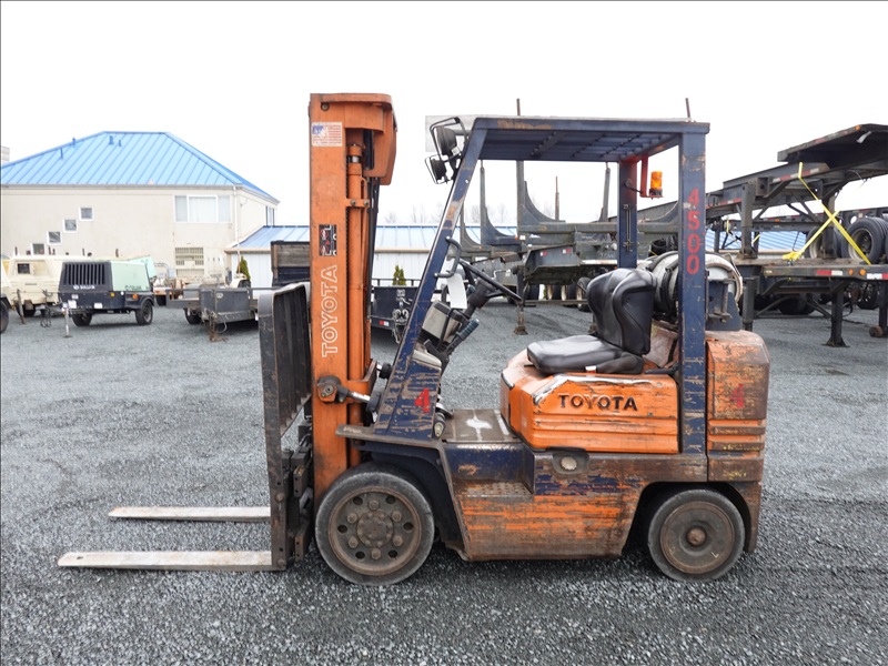 4,500 LB HRT FORKLIFT, 185" FORK HEIGHT, 3-STAGE MAST, SIDESHIFT, 4 CYL LPG HOUR METER READS: 14,262