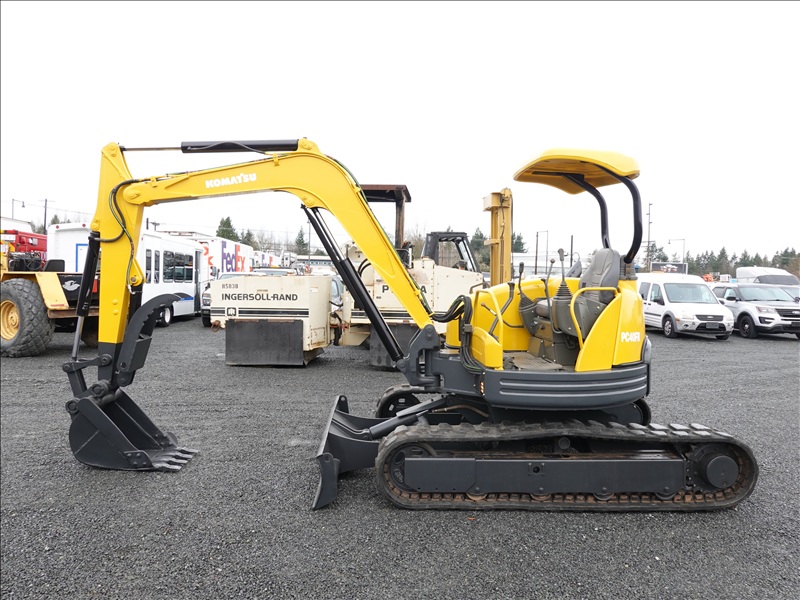 MINI EXCAVATOR, 3D88E-3B, SWING BOOM, 18" BUCKET, HYD THUMB, BLADE, RUBBER TRACKS, CANOPY, HOUR METER READS: 2,253